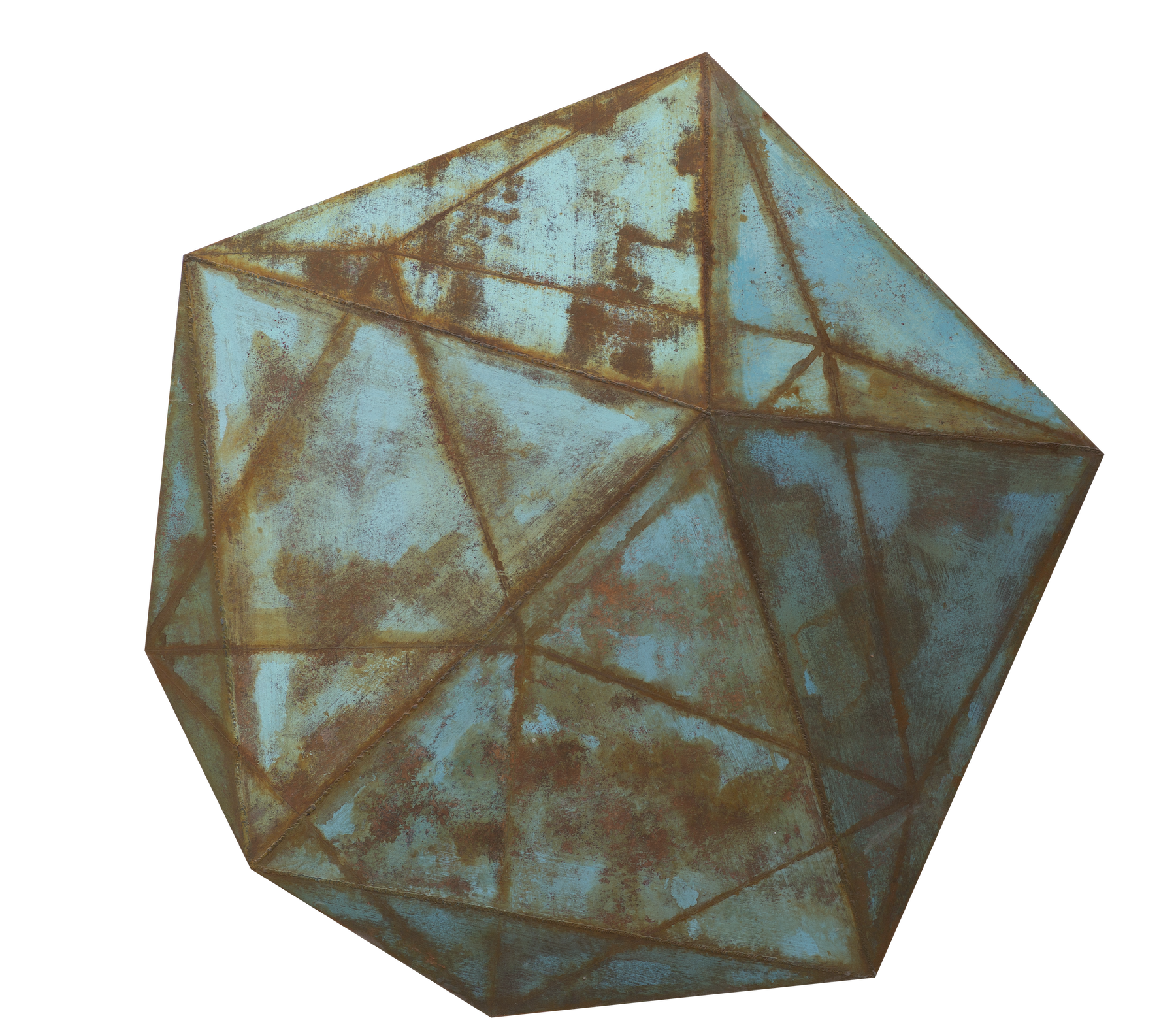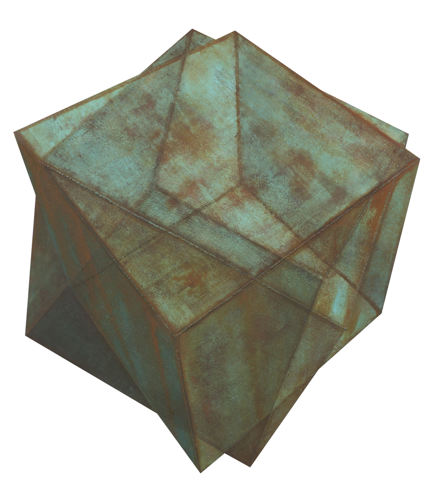 If Chen Linggang’s unit is the square, Fu Shuai’s is the fold. For more than a decade, Fu has been situated within the border zone of materiality and illusion, developing a singular practice in which paper, through saturation, layering, and meticulous handiwork, is transformed into surfaces that simulate corroded, patinated industrial metal. This territory, often described as “2.5D,” occupies the ambiguous zone between two-dimensional image and three-dimensional object, and it is here that Fu conducts both a philosophical and visual exploration.