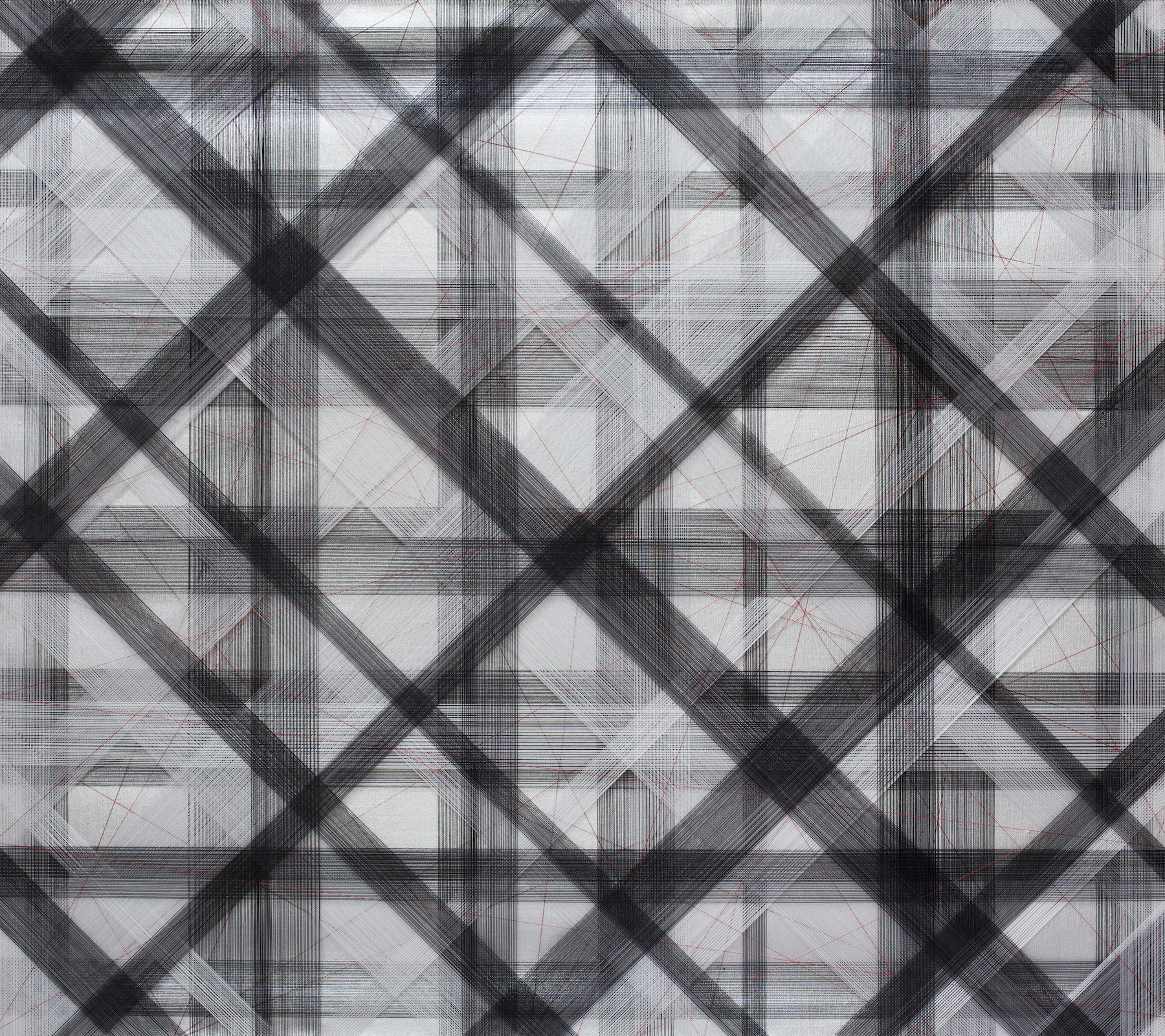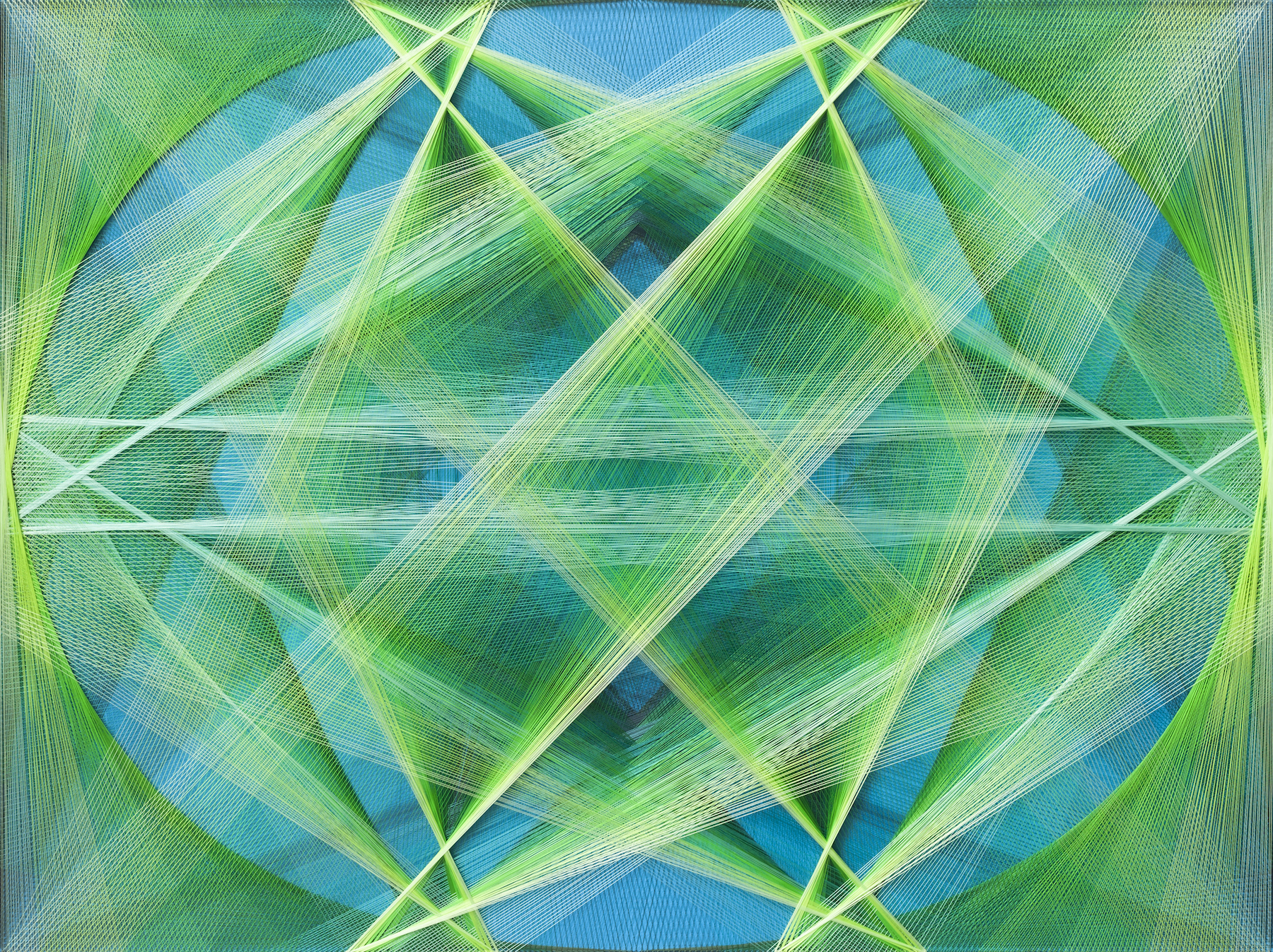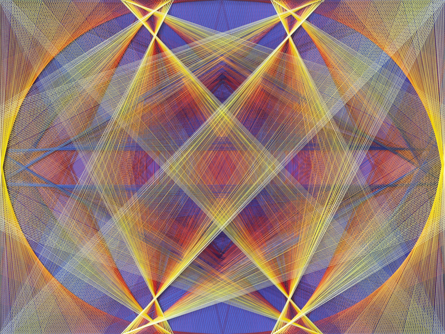 Gu Benchi, Constructology No.38 Polyester thread, stainless steel nails, acrylic adhesive, acrylic 163×183 cm 2014