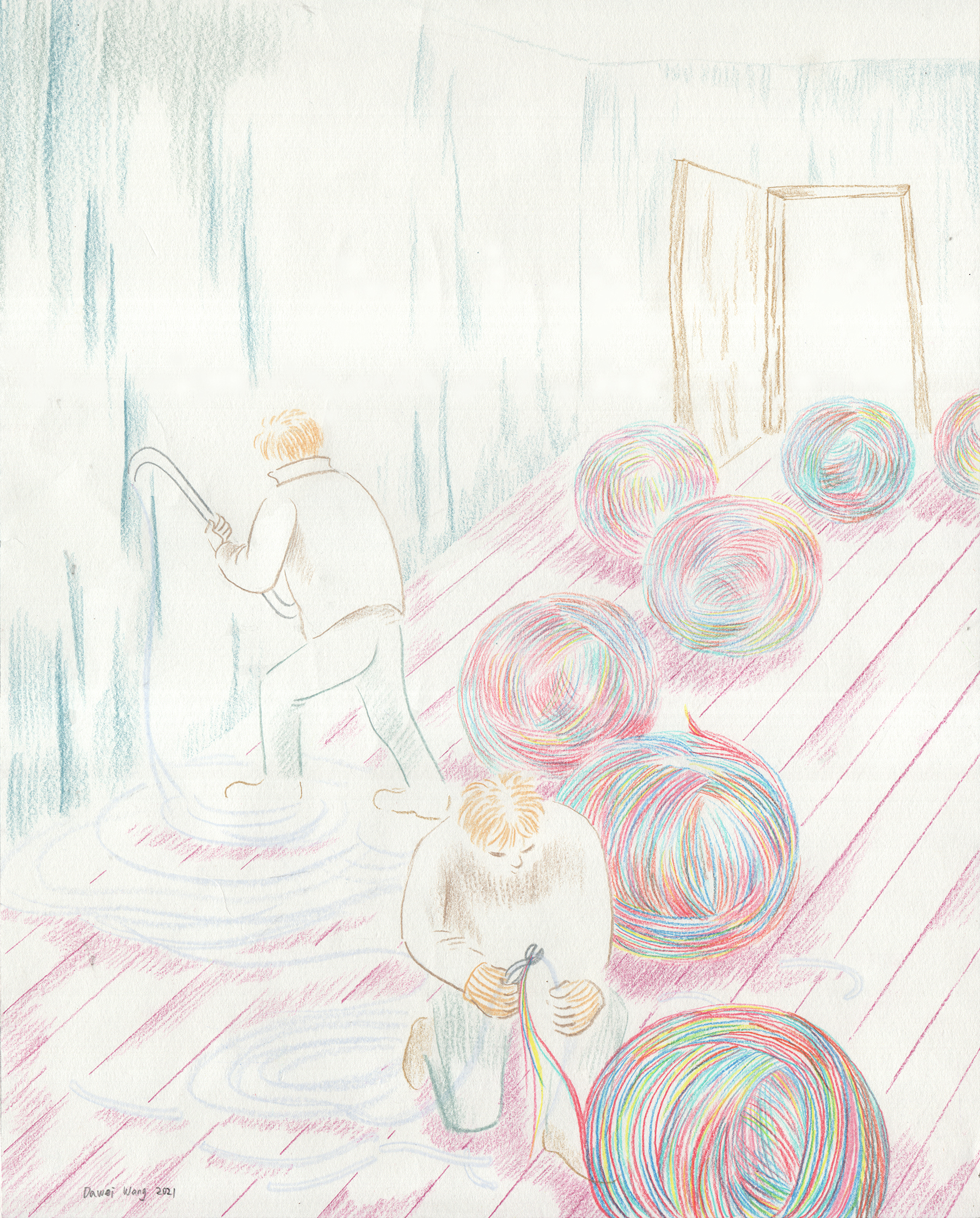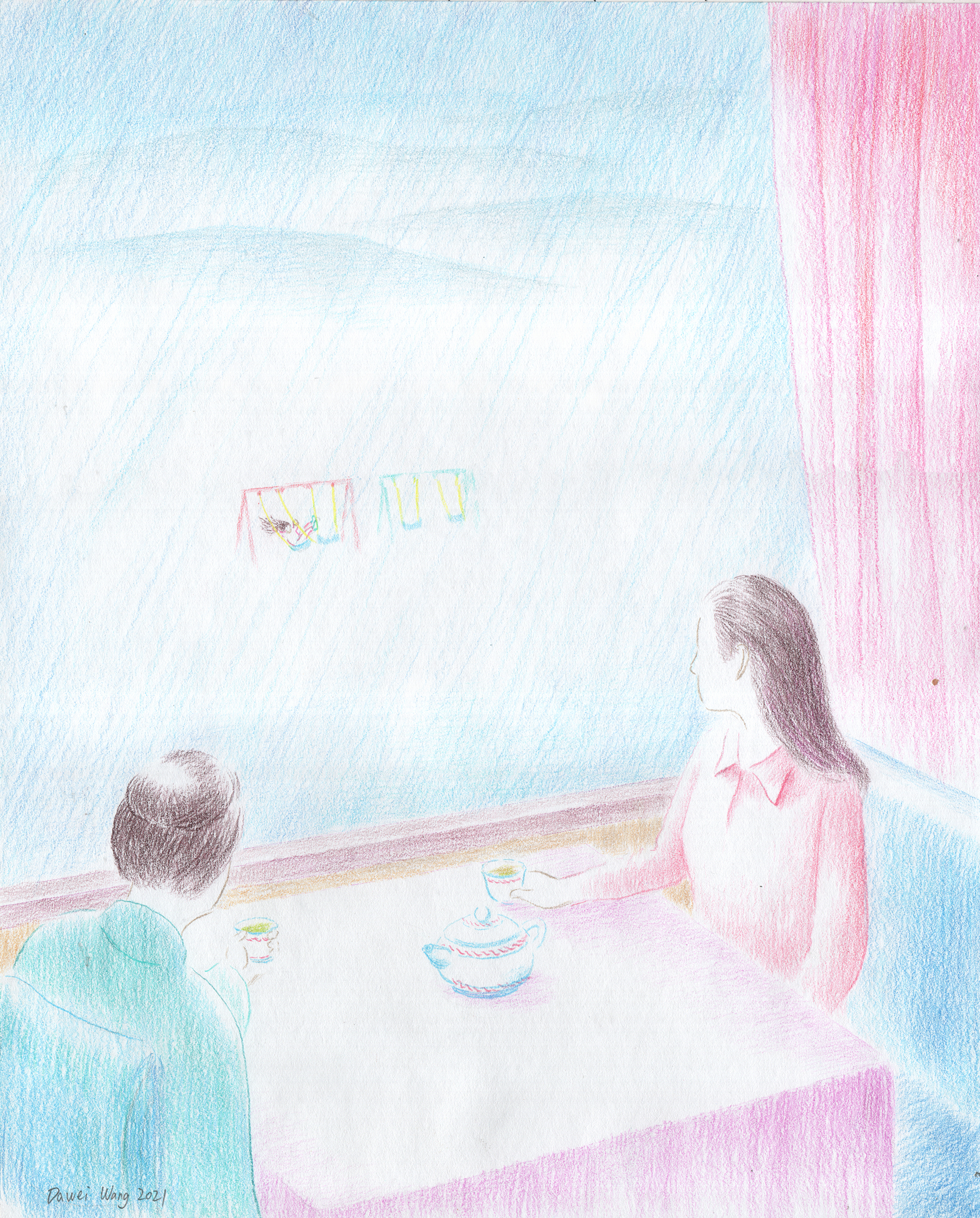 It is precisely here that Wang's affinity with Raymond Carver's short story Cathedral takes on its full significance. In this emblematic minimalist narrative, Carver recounts a narrator's encounter with a blind man, culminating in a moment of silent connection as they draw a cathedral together. The text never explicitly describes the edifice, leaving it to the reader to imagine, to fill the empty spaces with their own interior experience. For Wang, this narrative economy, where a few lines can evoke a world, becomes a pictorial principle. His paintings cultivate a form of minimalism not merely as stylistic restraint, but as a method of activating the viewer's imagination. As with Carver, ellipsis becomes generativity: what is left unsaid, what remains in shadow or off-frame, possesses as much power as what is shown. Wang's compositions resist visual saturation: they preserve zones of indeterminacy where the gaze can wander, where subjective projection can settle. The work thus becomes a space of tacit co-creation between artist and viewer, a threshold where affect is constructed in the interval.