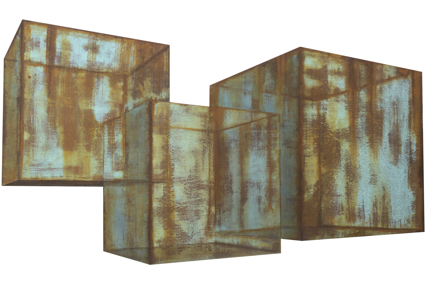 If Chen Linggang’s unit is the square, Fu Shuai’s is the fold. For more than a decade, Fu has been situated within the border zone of materiality and illusion, developing a singular practice in which paper, through saturation, layering, and meticulous handiwork, is transformed into surfaces that simulate corroded, patinated industrial metal. This territory, often described as “2.5D,” occupies the ambiguous zone between two-dimensional image and three-dimensional object, and it is here that Fu conducts both a philosophical and visual exploration.