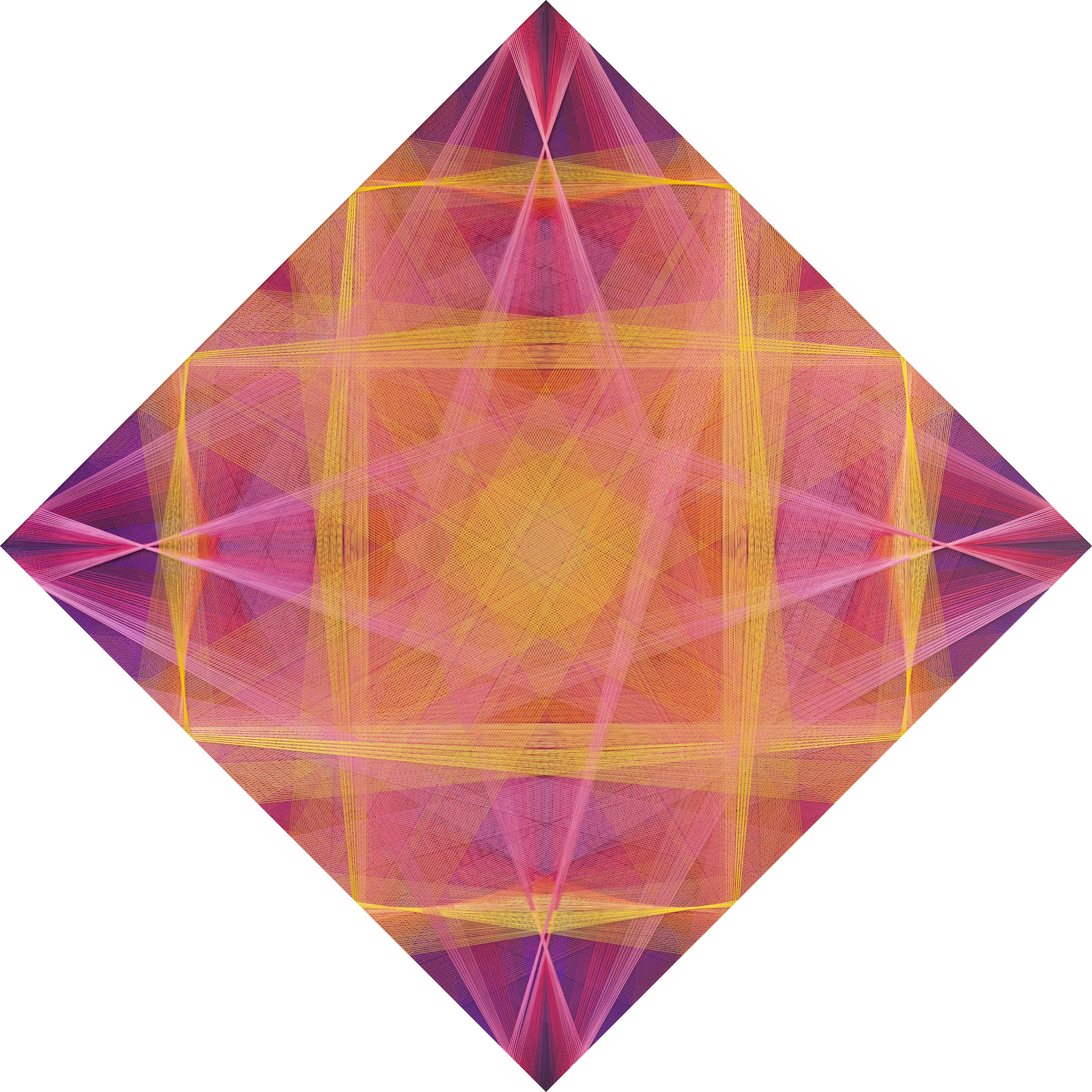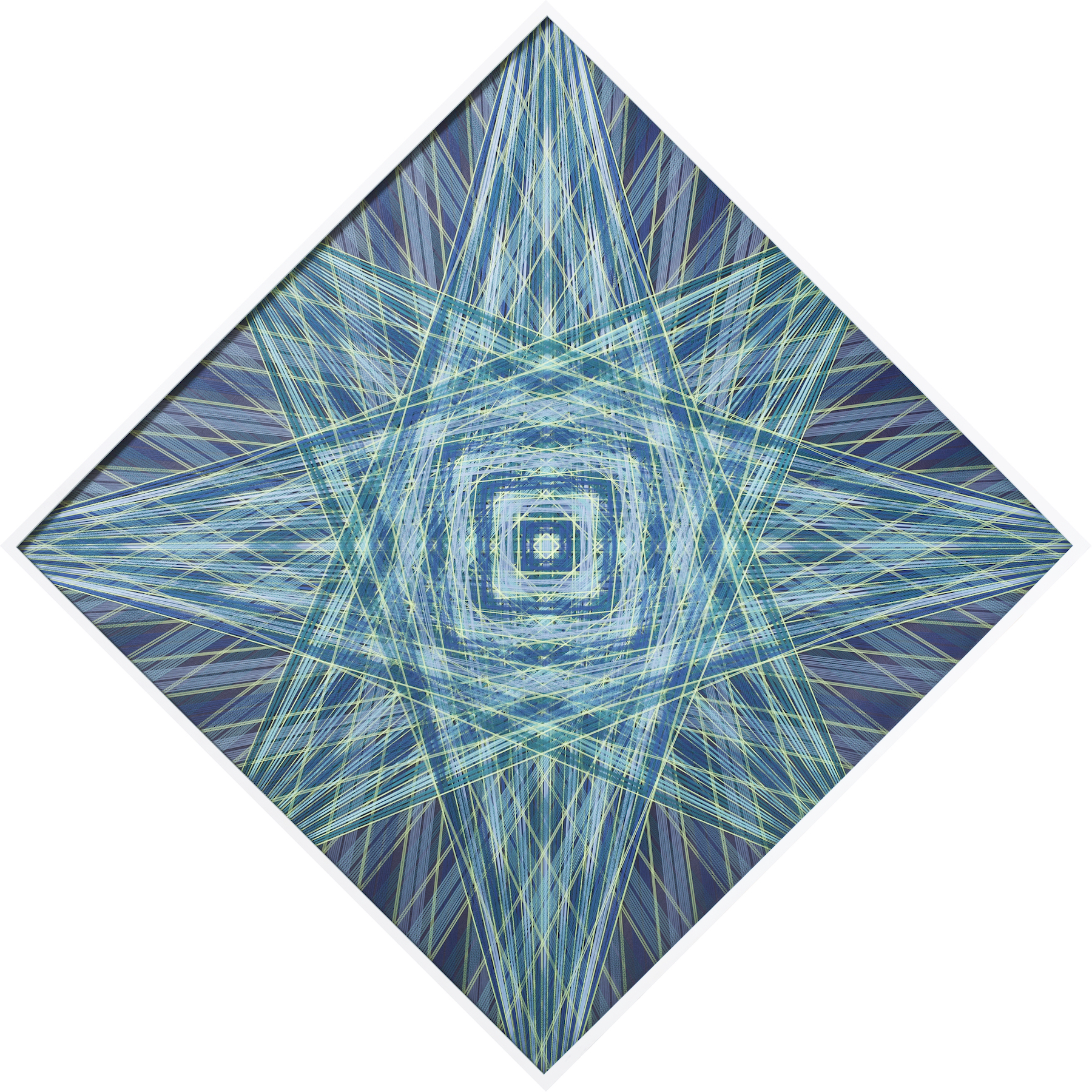 Gu Benchi, Constructology 2021-09 Polyester thread, stainless steel nails, acrylic adhesive, acrylic 160×160 cm (square placement) 226×226 cm (diamond placement) 2021