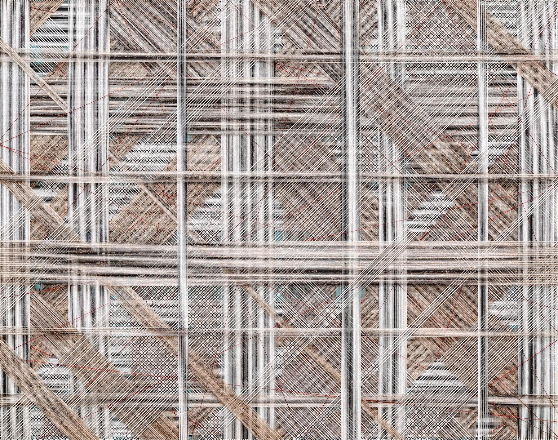 Gu Benchi, Constructology 2019-07 Polyester thread, stainless steel nails, acrylic adhesive, acrylic 180x160 cm, 2019
