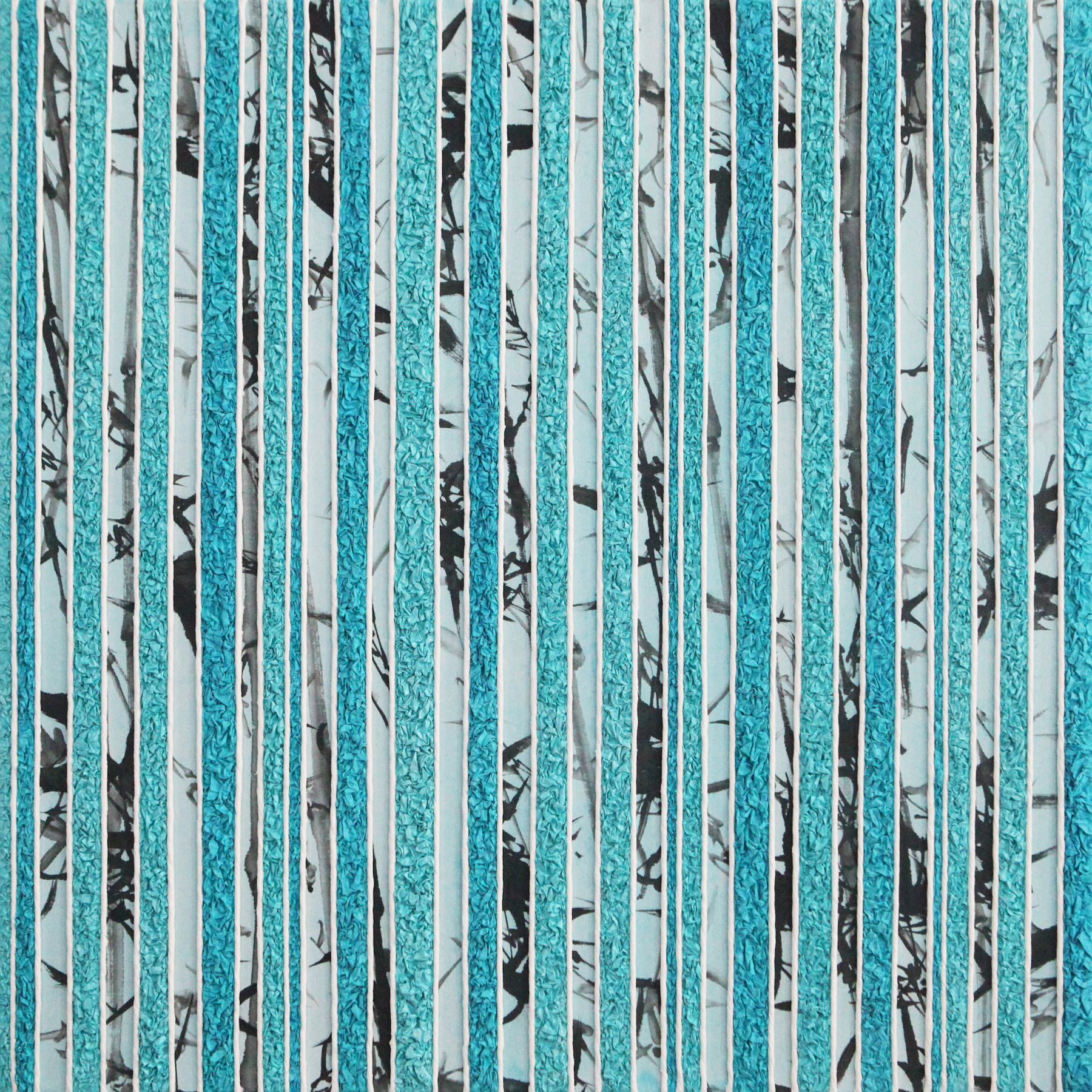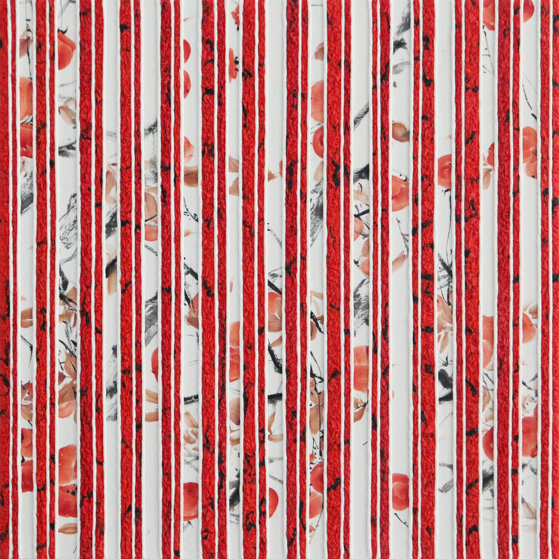 Chen’s most recent works, completed in 2025, mark a significant evolution. Using paper and ink as fundamental art medium, the compositions feature vertical lines, ink-wash motifs, and fragments of text symbolizing the fleeting nature of time and the slippage of memory. Conceived as a counterpart to the Reading Series, this new body of work reflects the ordered relationship between whole and part with a distinctly more “information-oriented” sensibility. Against the backdrop of artificial intelligence and accelerated technological change, the work invites what Chen calls a multidimensional “reading,” an extension of two-dimensional art whose elements diffuse into the surrounding space. The grid endures, but what it contains and how we are invited to read it, is constantly in motion.