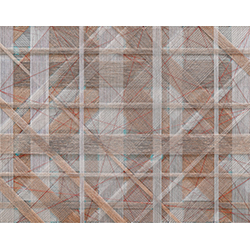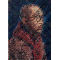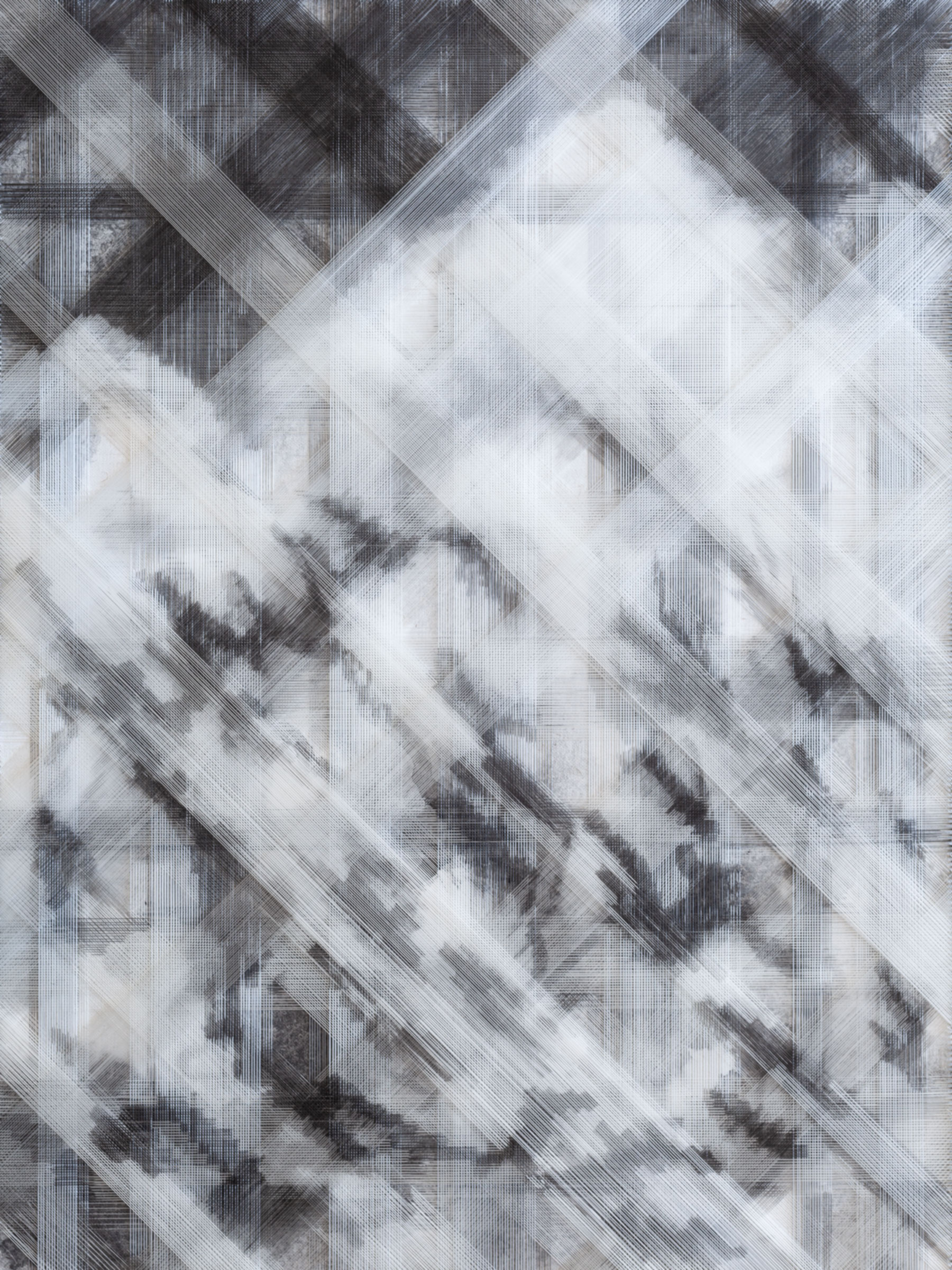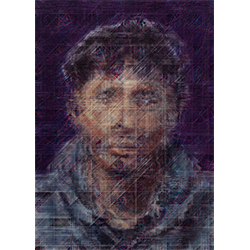Gu Benchi's most recent series marks a significant evolution. Moving from pure geometric abstraction into portraiture, he applies his technique of multi-layered weaving, now across eight superimposed strata, to the human face. The shift was prompted by what the artist describes as a growing perception, in the aftermath of the global pandemic, of fracture and incommunicability in contemporary life. Citing Herbert Marcuse's One-Dimensional Man, he observes that "the beautiful vision of a global village and universal harmony has vanished like a dream in an instant."