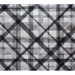 Gu Benchi's woven works are built through a process of continuous layering and repetition. Each piece is constructed from superimposed strata of polyester thread, a synthetic material chosen for its stable performance and tensile strength over softer natural fibers or more rigid steel wire. The result is a body of work in which material precision and spiritual inquiry are inseparable: the act of threading, accumulating, and overlapping becomes, in the artist's words, a way of allowing "scattered energy to eventually concentrate and erupt."