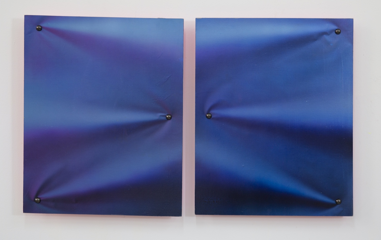 Pleats - Texture(Fluorescent Hot Pink / Indigo Blue), Mixed media on wood, 60X50X4.5 cm, 2025