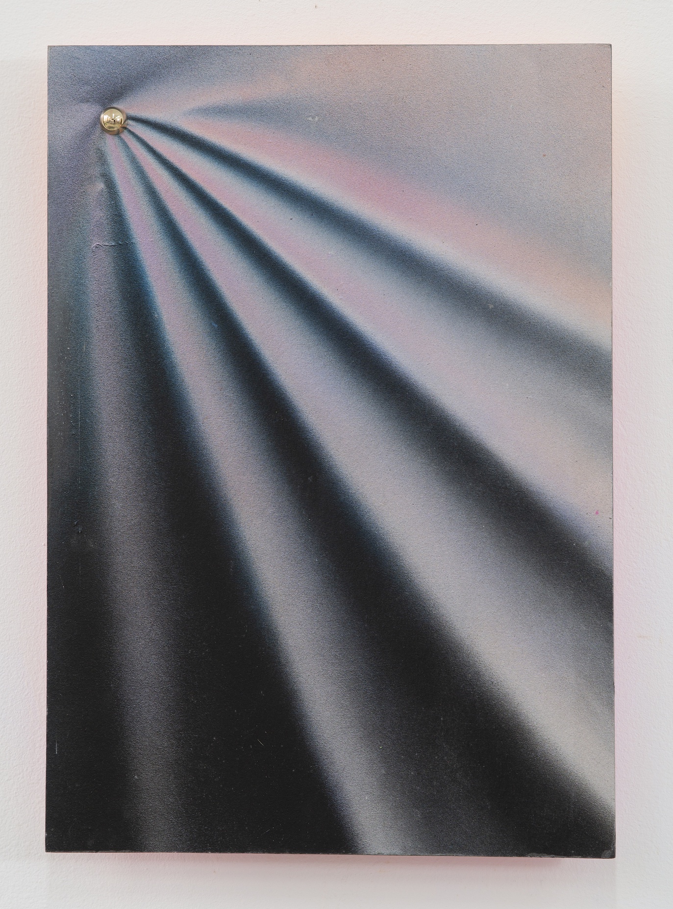 Extending beyond the two-dimensional investigations that have long characterized his practice, Fu has recently begun experimenting with what he describes as "soft sculpture," works that explore an "intermediate state of material properties" to complement his established inquiry into "2 1/2D" spatial ambiguity. In these pieces, paper, saturated with multiple layers of acrylic paint, acquires the drape, flexibility, and tactile qualities of fabric, hanging vertically on the wall with textile suppleness. Yet visually, through Fu's deployment of metallic pigments and carefully orchestrated light-shadow effects, these works continue to present themselves as cold, hard, industrially produced metal. This discrepancy between what the eye perceives and what the hand would discover, between visual illusion and tactile reality, reinforces the ontological ambiguity that runs through the entire project. This expansion does not represent a departure from Fu's central concerns but their three-dimensional extension: if the earlier works occupied the ambiguous zone between flat image and volumetric object, these new pieces inhabit the equally unstable territory between fabric and metal, between soft and hard, between organic malleability and industrial rigidity.
